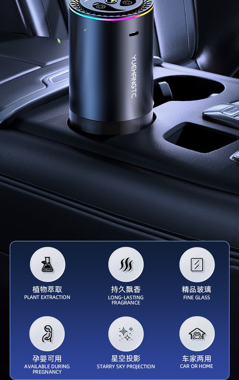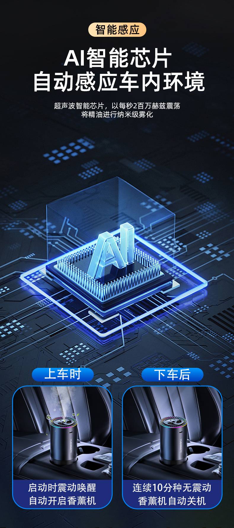 8. Älykäs AI älykäs siru tunnistaa automaattisesti ultraääni-älykäs sirun autoympäristössä ja sumuttaa eteeriset öljyt nanomittakaavassa värähtelyllä 2 miljoonaa hertsiä sekunnissa